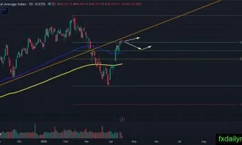 The DJIA index continues to stick near its upward-sloping orange trend line, currently testing it from below. The index is in a wait-and-see mode as traders look for a clear reaction. If buyers can muster the strength to break out and close back above this trend line, it could signal a resumption of the broader bullish trend. However, if the index suffers a rejection at this resistance, it could open the door for a deeper bearish correction toward the daily EMA 100 and lower Fibonacci support levels.