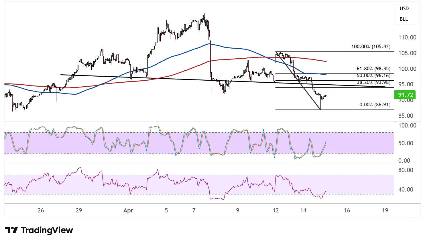 The measured move target of the formation points to further losses ahead, with the swing low around $86.91 per barrel serving as the next key downside objective.