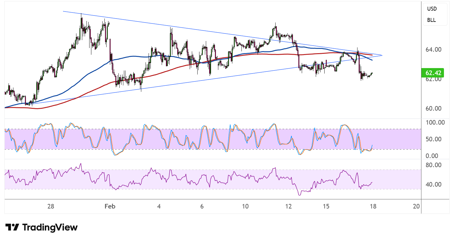 The measured move from the symmetrical triangle breakdown points to potential downside targets in the $60.00 area, with the next significant floor possibly found around $59.00–$60.00 per barrel. A deeper selloff could extend losses toward the $58.00 handle if bearish momentum picks up steam.